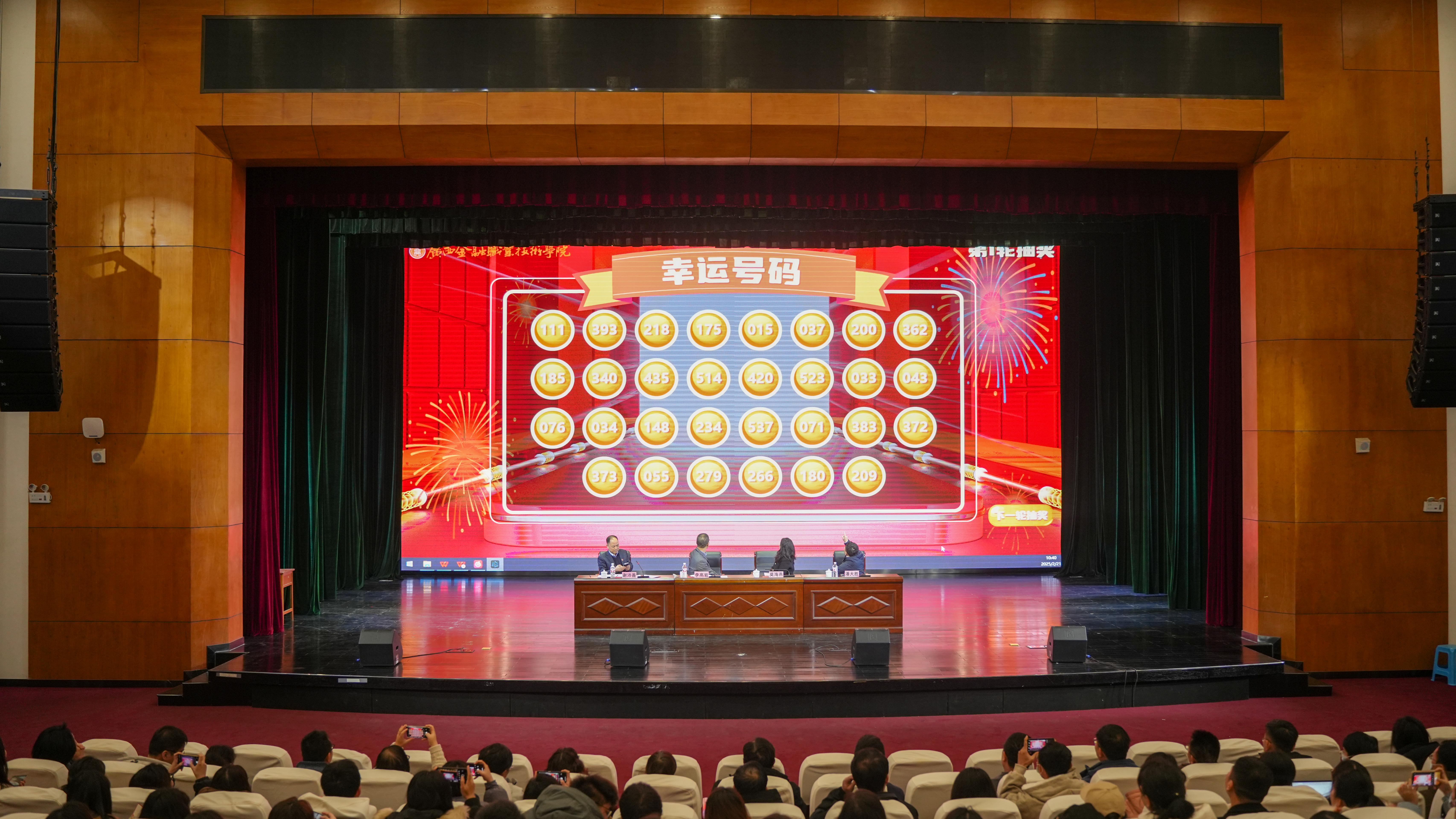 “开学见喜”环节,校领导为教职员工抽取到320个幸运奖,会议现场欢欣热闹,相信教职员工们会满怀信心、迎接挑战,在新的一年树立“上下一盘棋”思想意识,永葆“想干、能干、敢干、干成”的工作激情,以“开局就是决战、起步就是冲刺”的奋斗状态投入到各项工作中,为学校更好更快地发展作出贡献!