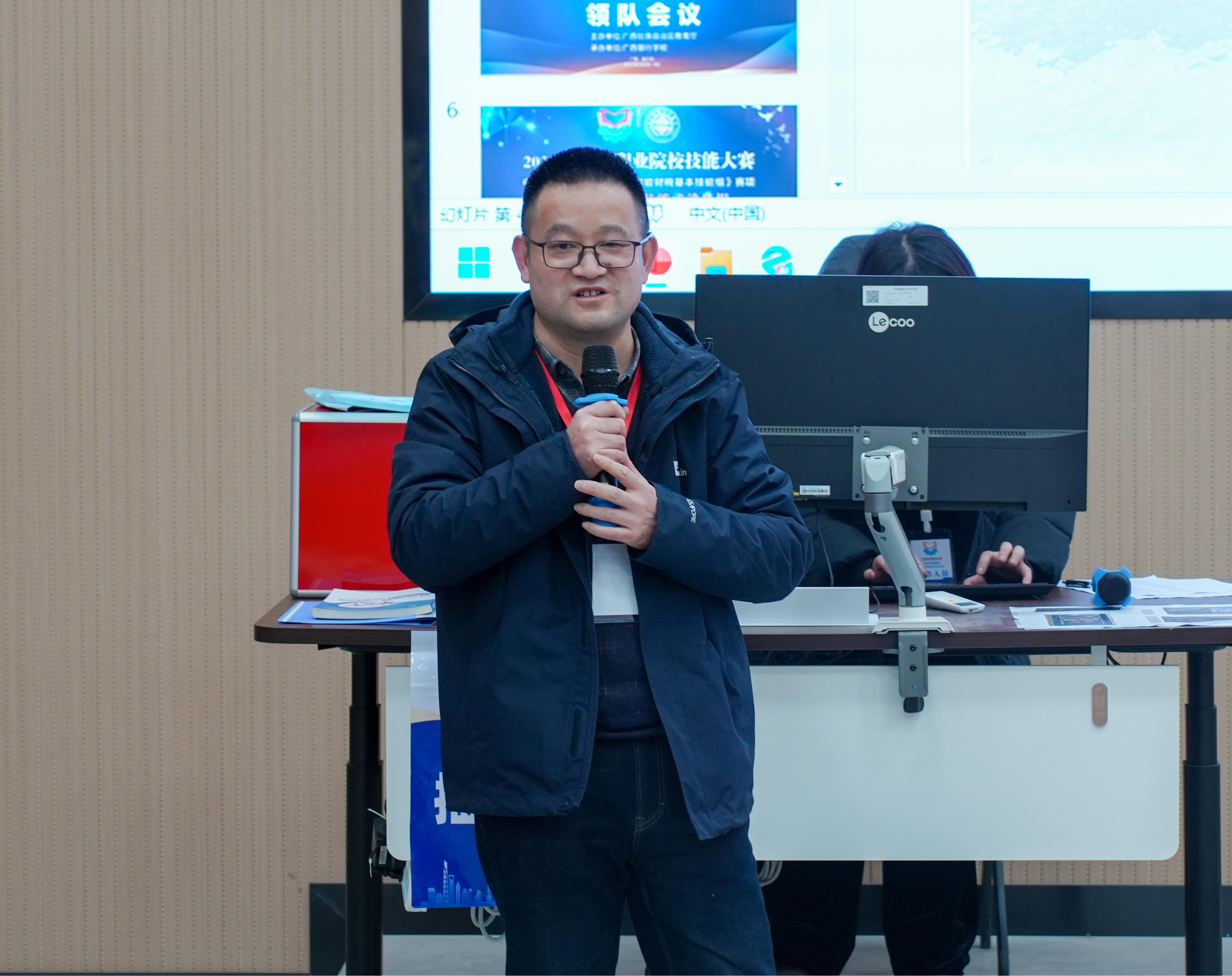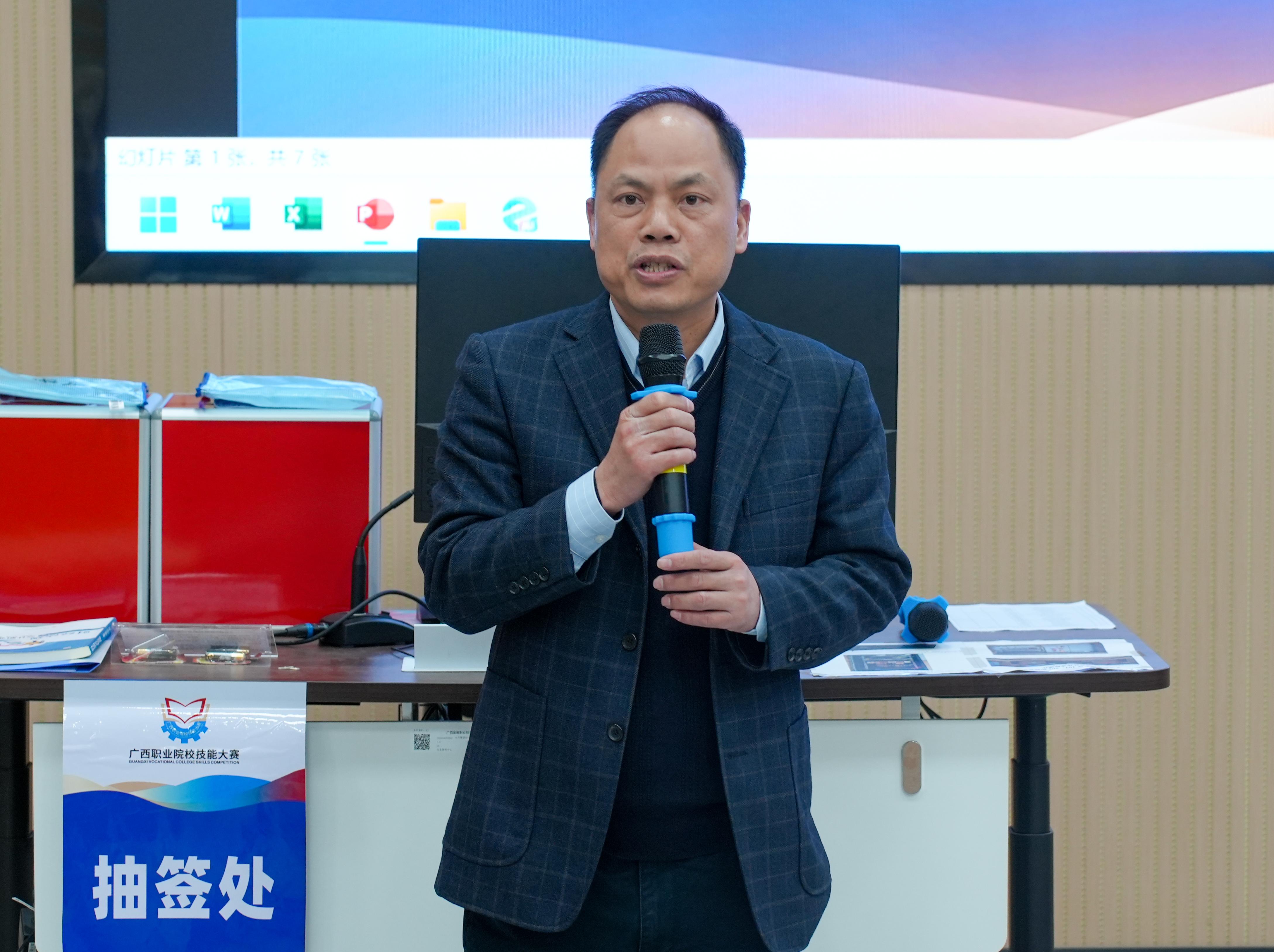 在领队会议上,裁判长对比赛规则、评分标准以及争议处理机制进行了详尽的阐释,确保每位参赛选手都能全面且准确地理解比赛内容。学校副校长谢沛善在会上向莅临指导的各参赛团队致以诚挚的欢迎,并寄语全体选手:要以奋勇拼搏的姿态迎接挑战,在竞技舞台上充分展现新时代财税技能人才的专业素养与精神风貌,赛出水平、赛出风格。