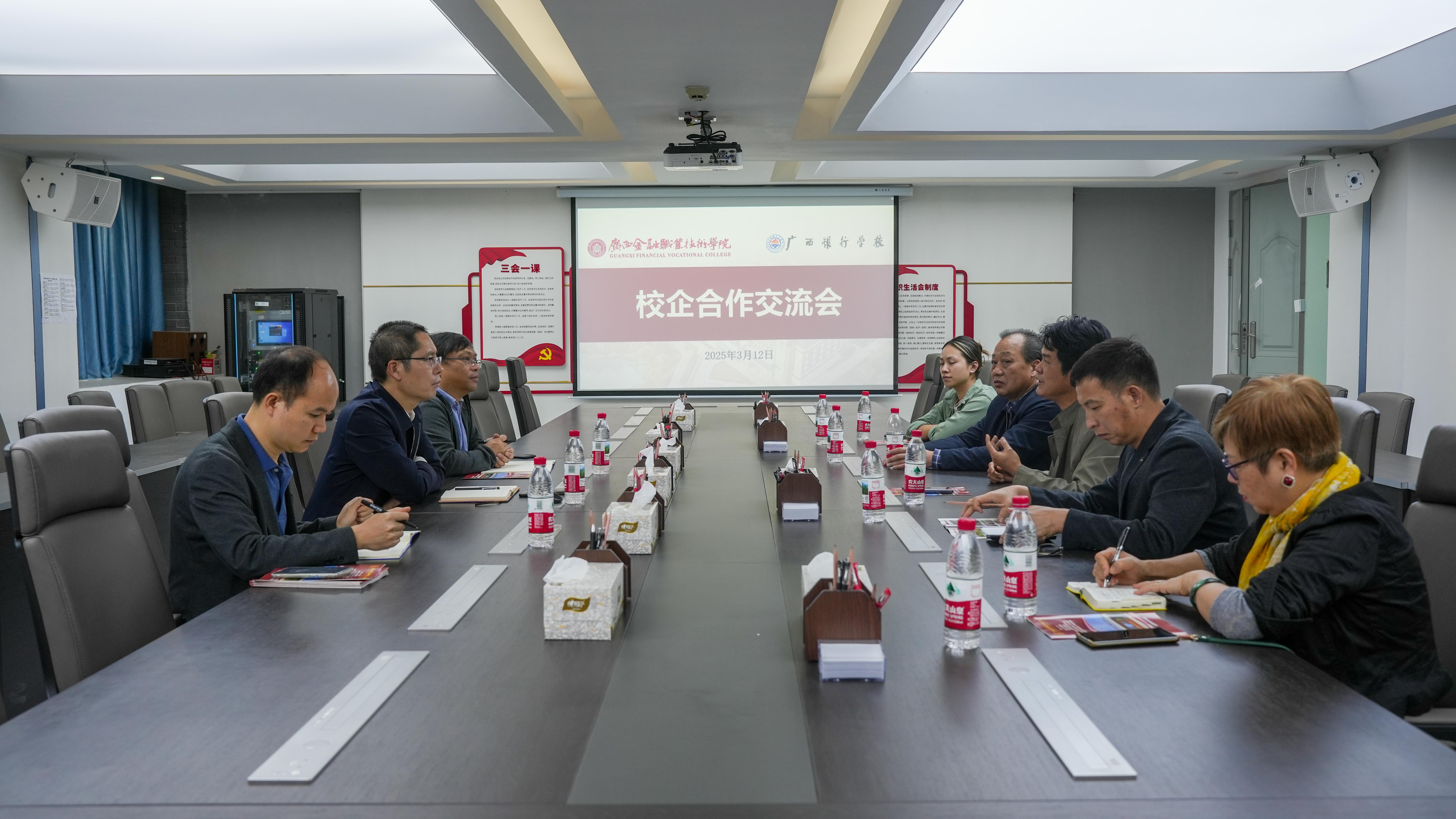 3月12日,广西美加美绿色种养有限公司董事长刘功锋、广西壮牛水牛乳业有限责任公司董事长农天懂及两公司高管等一行受邀到访kaiyun官网,与校党委书记李高岩就校企合作事宜进行了深入洽谈。招生就业处处长石利军、副处长杨吉才等参会交流。