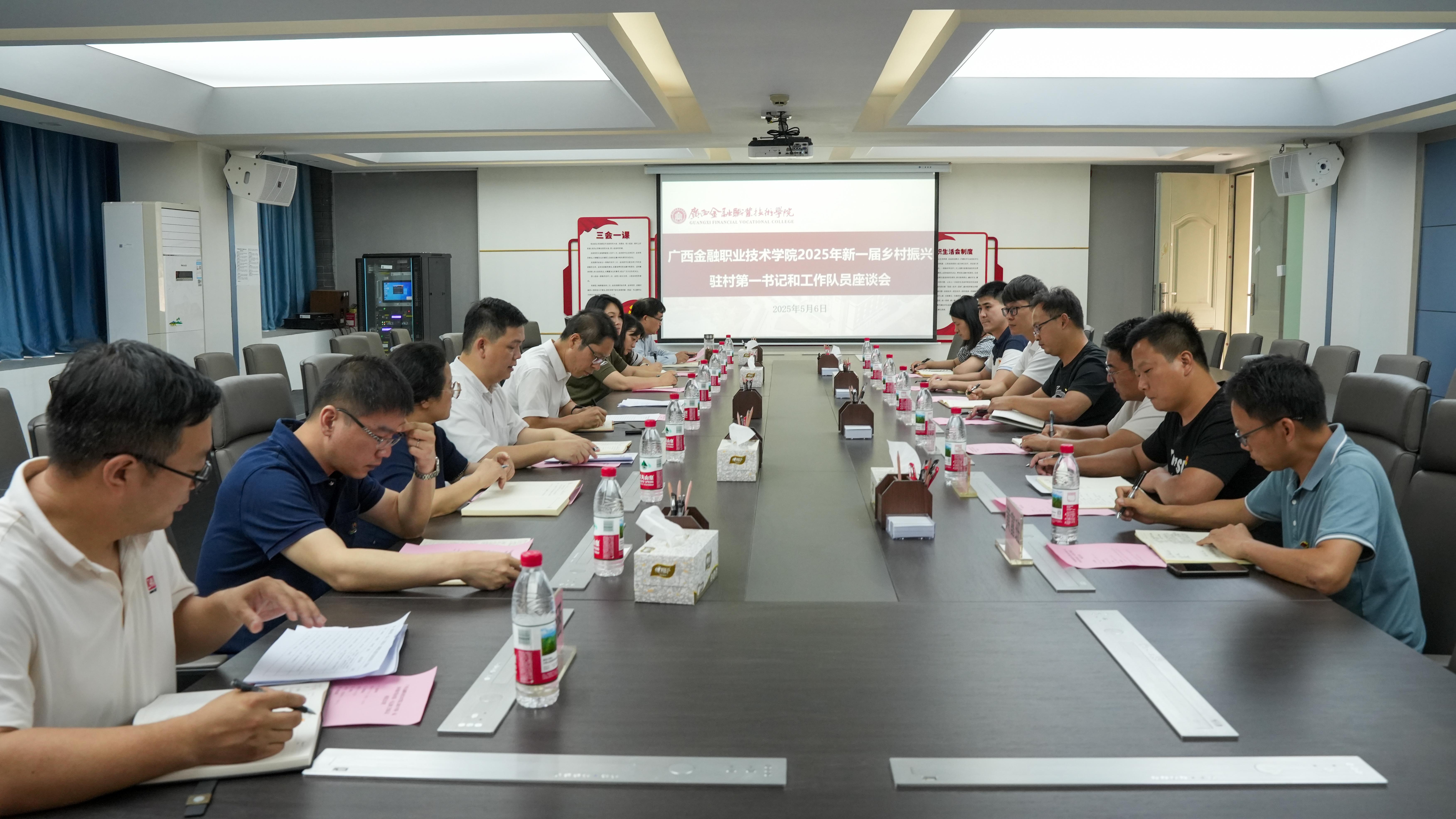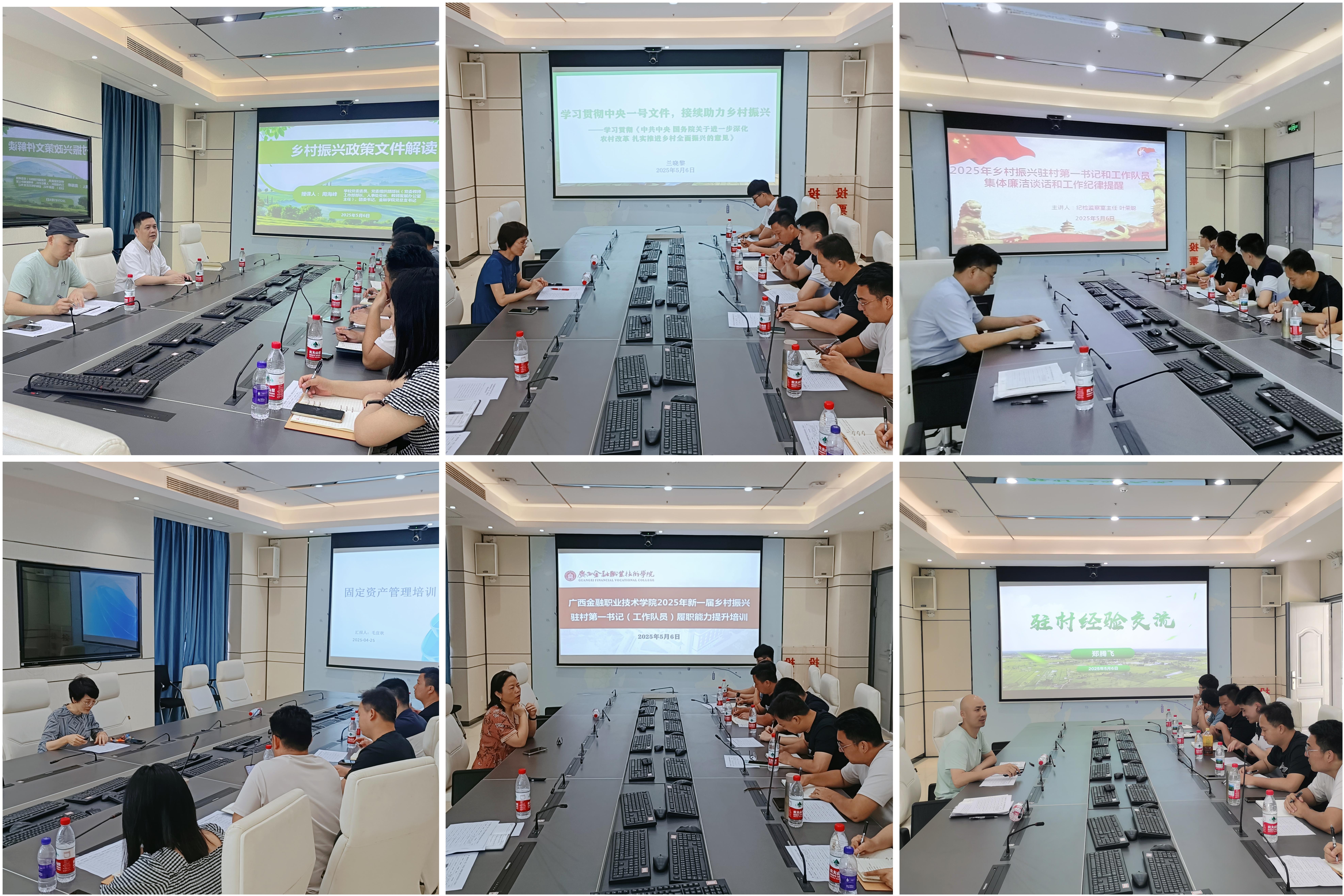 在培训环节,党委组织部(党委教师工作部、人事处、教师发展办公室)部长周海峰重点解读《广西驻村工作队选派管理办法》《第一书记驻村专项工作经费和帮扶经费使用有关规定》以及学校帮扶政策。学校财务处副处长韦晓岚就乡村振兴项目资金管理、差旅费报销、资金规范使用和审计监督等方面内容进行培训。学校资产管理中心(采购管理中心)主任毛宜秋结合固定资产盘点方法和技巧、固定资产管理制度和流程、固定资产信息化管理手段等方面进行详细讲解。学校党委宣传部部长兰晓黎从乡村振兴政策宣传策略、新闻报道撰写与发布技巧、社交媒体运营与舆情管理、成功案例分享与宣传经验交流方面进行重点培训。学校纪检监察室主任叶荣聪从乡村振兴工作纪律要求、廉政风险防控机制建设等方面对新任第一书记和工作队员进行了廉洁教育和提醒谈话。学校机关第一党支部书记、往届第一书记代表郑腾飞跟新任第一书记和工作队员在乡村治理与产业发展、驻村工作常见问题与应对策略等方面进行分享交流。