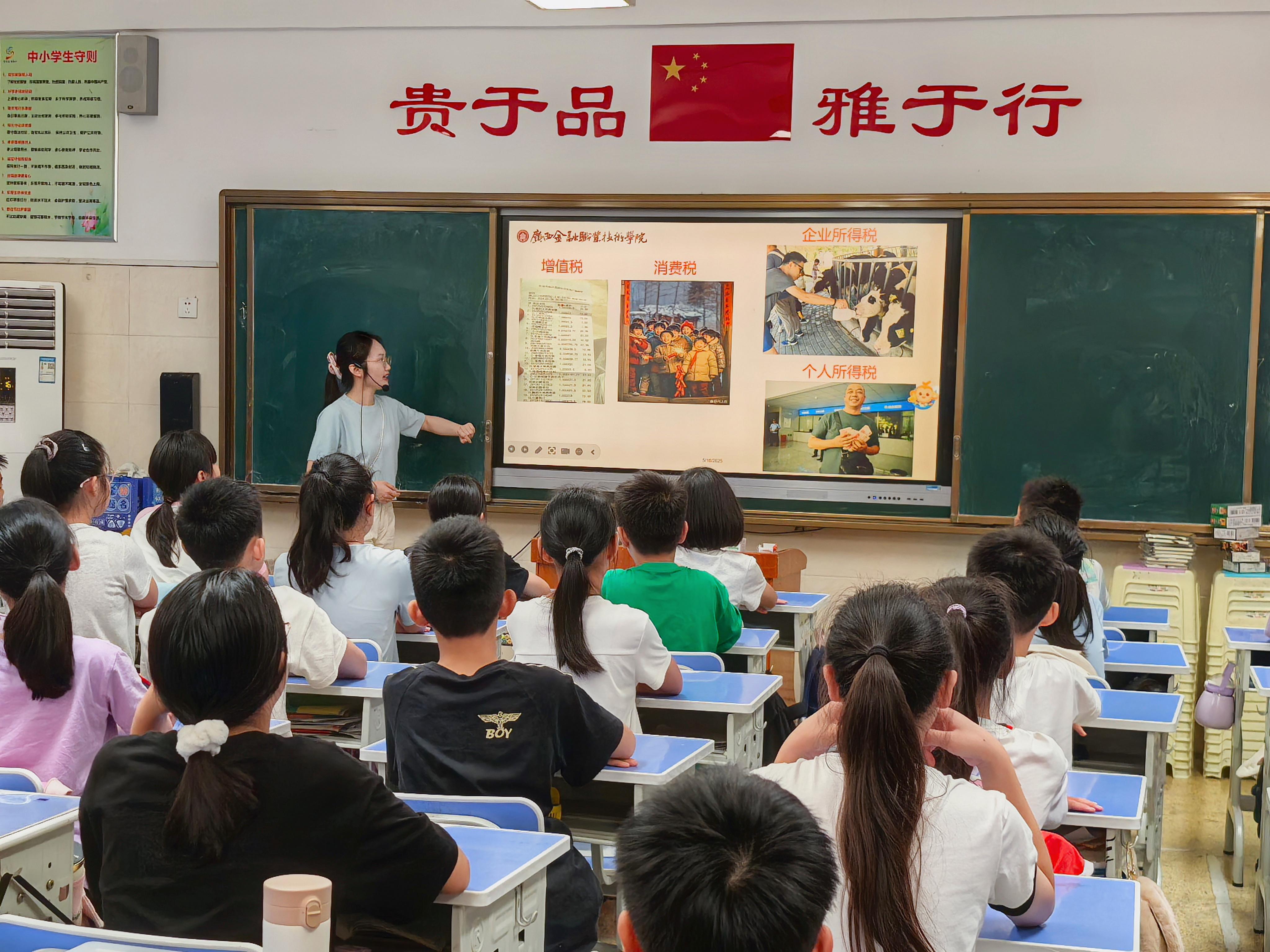 5月16日,kaiyun官网会计学院“金穗企服”团队赴南宁市桂雅路小学开展“税润童心、筑梦未来”职业教育周实践活动。通过“理论+情景+游戏”三维教学模式,创新开展青少年税法启蒙教育,50余名小学生在沉浸式体验中完成税收知识启蒙。会计学院副院长陈园带领“金穗企服”教师团队参与活动。