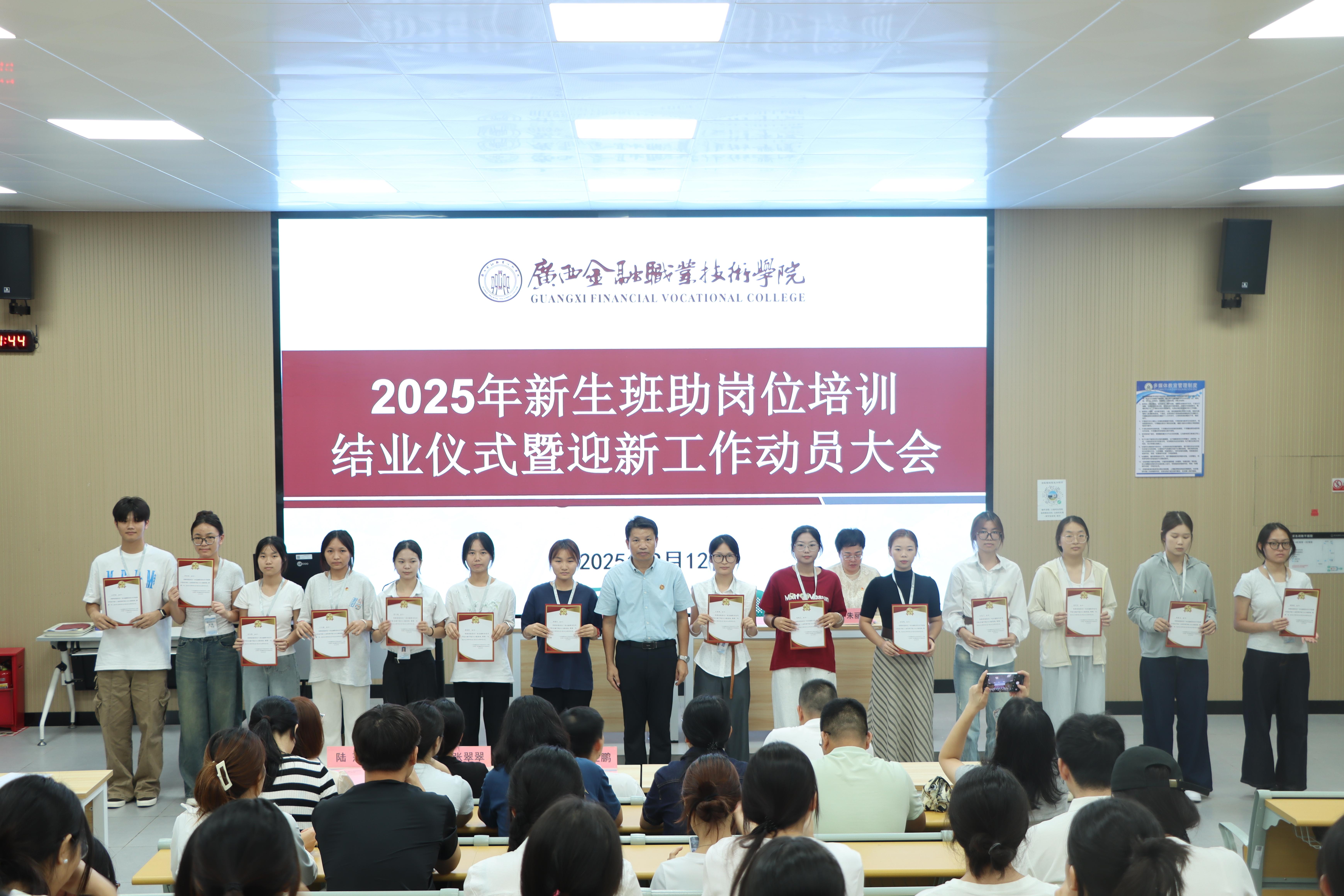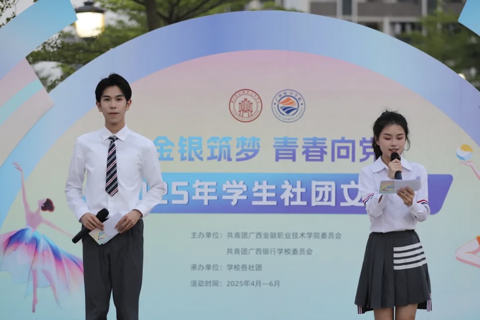 打造“广西三月三”民族文化品牌活动,增进民族团结,坚定文化自信。5月,2025年“金子百花”社团文化节圆满落幕。7月,顺利举行2025届毕业生典礼。9月,庆祝中华人民共和国成立76周年暨2025级迎新生文艺晚会顺利举行。10月至12月,开展以“挺膺担当铸青春·踔厉奋发启新程”为主题的2025年学生技能竞赛·文化艺术节。优化社团管理,完成全校35个学生社团的指导老师选聘工作,共有4800余名学生参与学生社团活动,重点扶持思想引领、学术科技类精品社团,打造 5 个 “一社一品” 特色社团,年度巡礼成为学生期待的文化盛宴。