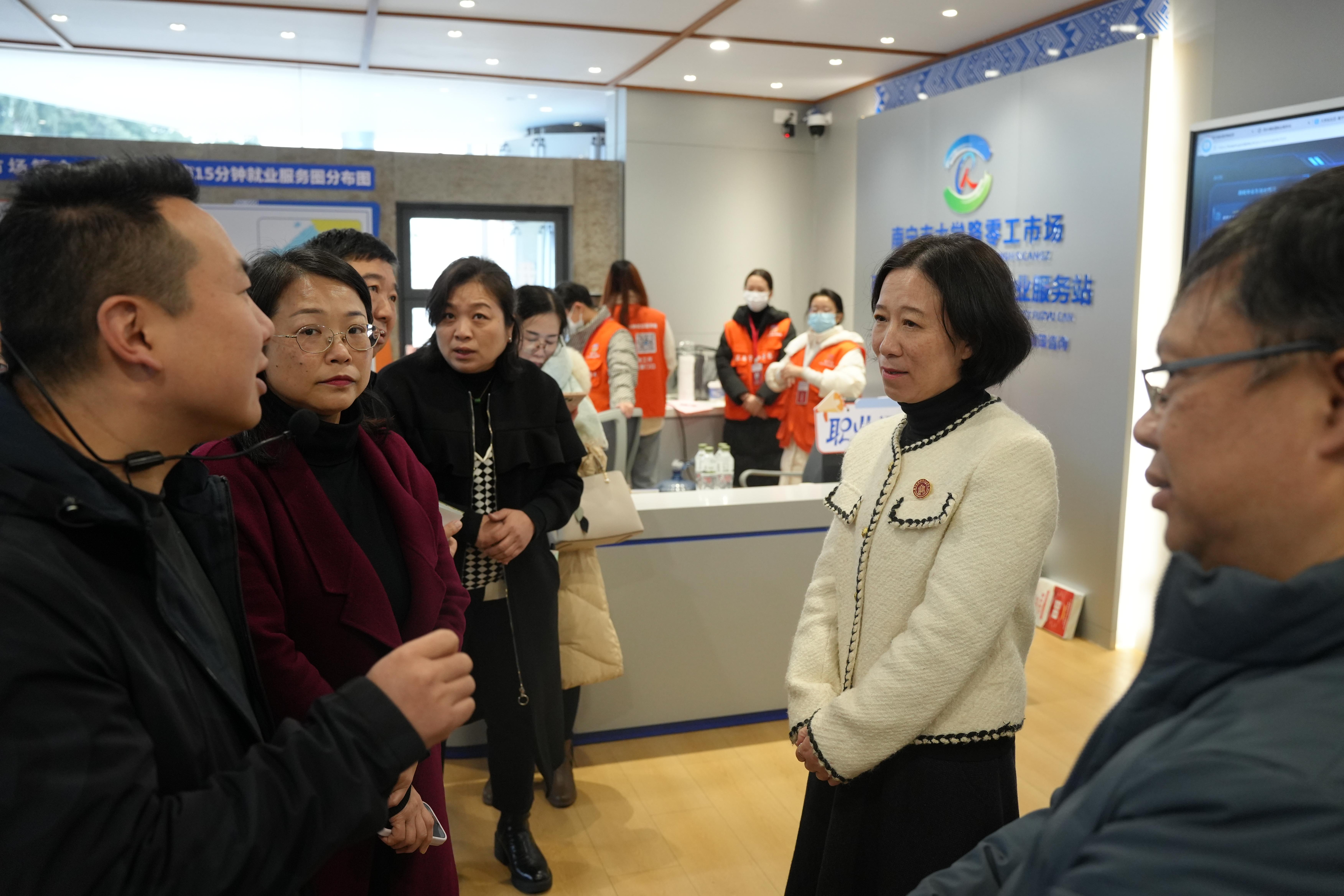 莫海燕校长一行在零工市场进行了实地参观调研,莫校长对零工市场的工作给予了高度评价,随后校政企双方进行了交流座谈。