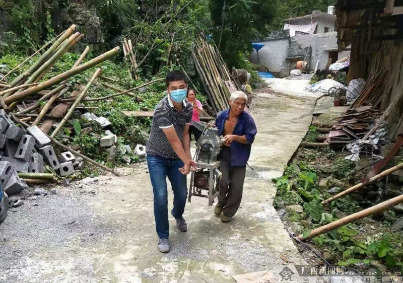 覃一君帮助村民搬入新房。蒙海生 摄