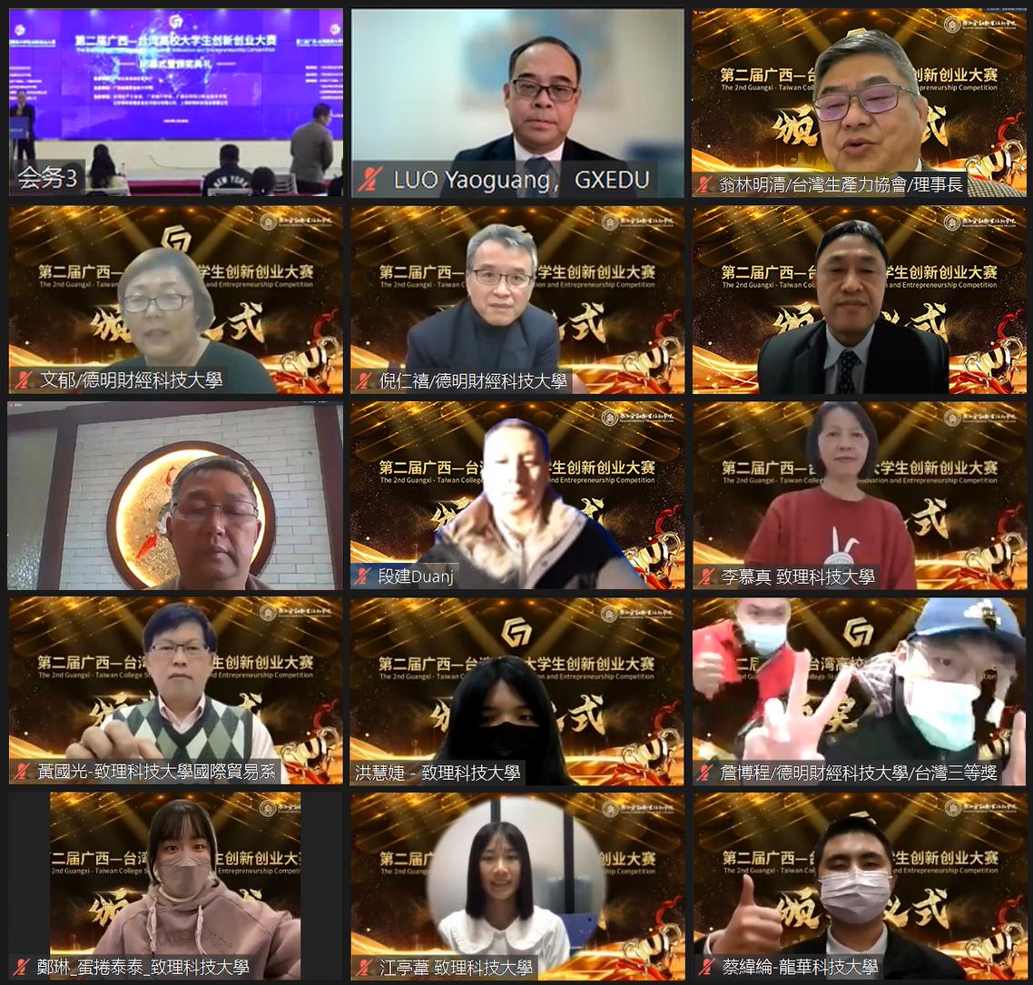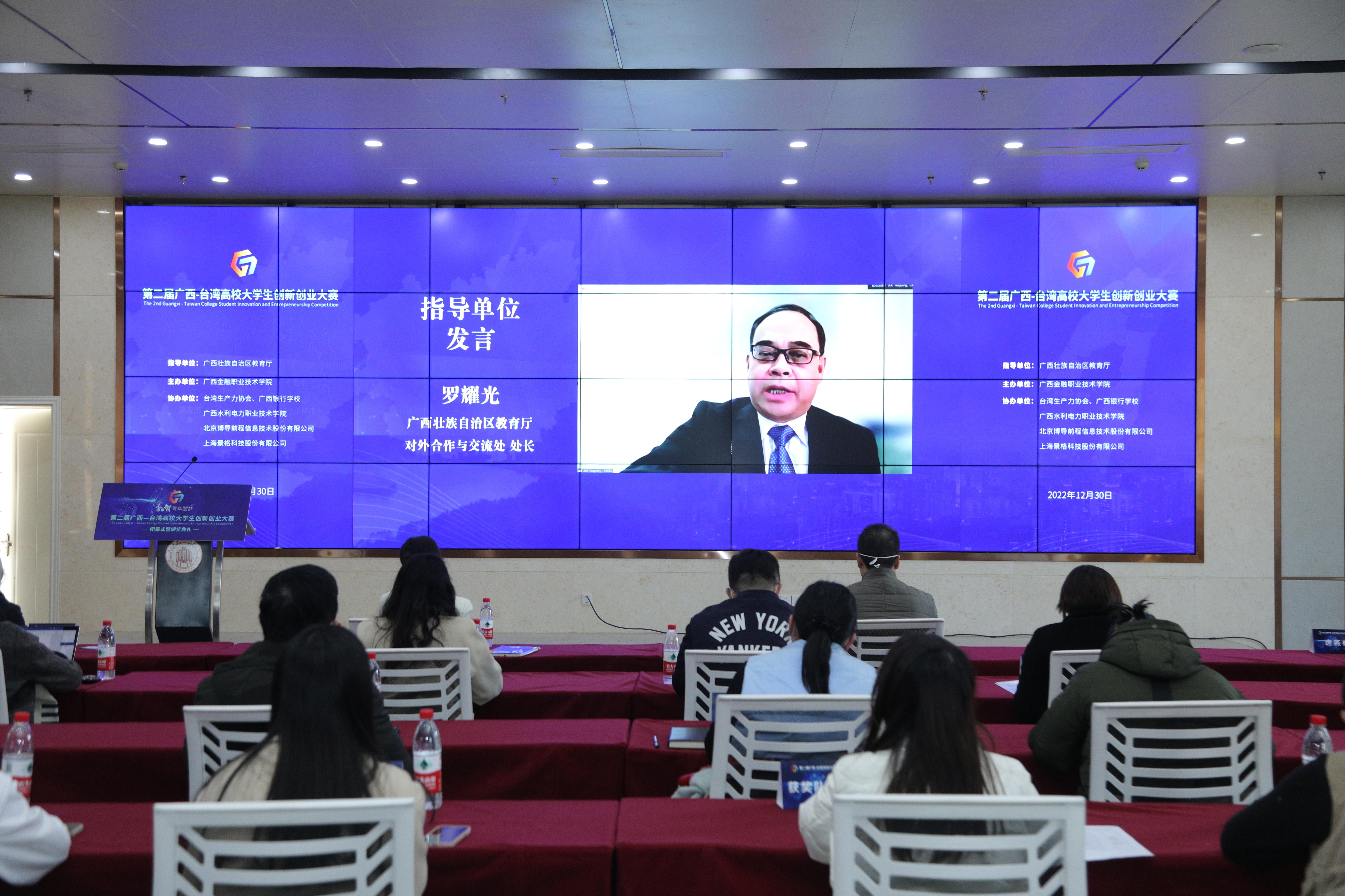 12月30日,第二届广西—台湾高校大学生创新创业大赛落幕。大赛在广西南宁和台湾台北设立会场,以“线上+线下”结合的形式,举办了闭幕式暨颁奖典礼。