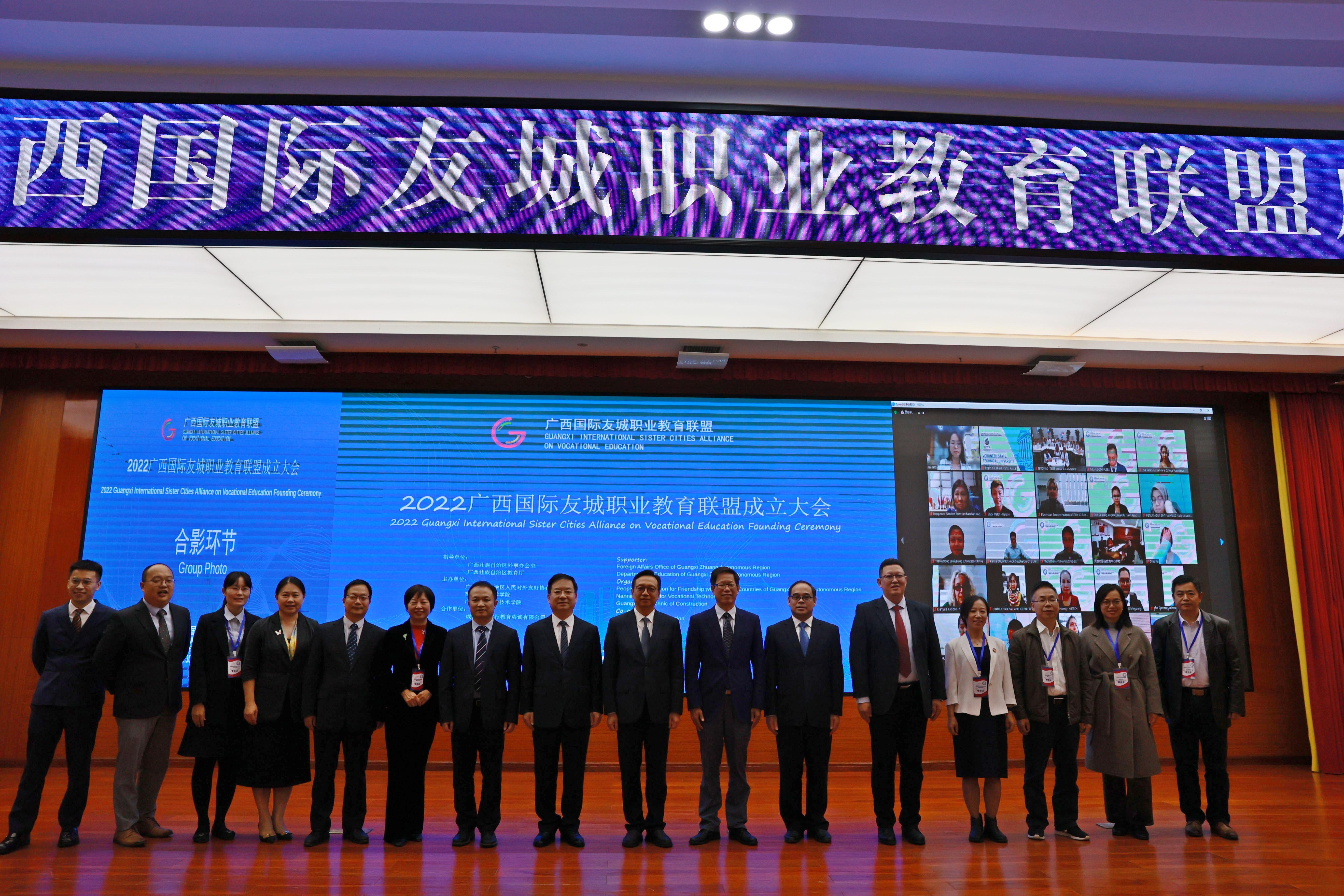 自治区外事办公室、自治区教育厅领导为广西国际友城职业教育联盟揭牌(南宁职业技术学院供图)