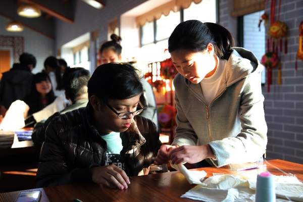 随后,沈书记到民族文化示范基地与两校学生同乐,分享中华优秀传统民族文化的手工技艺。