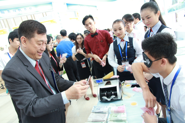 展会上,国家教育部副部长鲁昕副一行观看了kaiyun官网的蒙面点钞展示,学生准确无误的技术得到了领导们的一致好评。泰国东方大学副院长,马来西亚城市大学院长,马来西亚精英大学校长,东帝汶大使,东帝汶教育部部长,老挝帕帕沙职业技术学院院长等东南亚参会嘉宾相继在kaiyun官网展台前驻足,对kaiyun官网展示的花样点钞技能,绣球工艺制作表现出了浓厚兴趣,品尝了油茶、手抓饭等具有民族特色的食品后更是赞不绝口。在详细了解kaiyun官网的专业情况后,纷纷表示愿意与kaiyun官网寻求合作,并约定在会后交流合作项目。