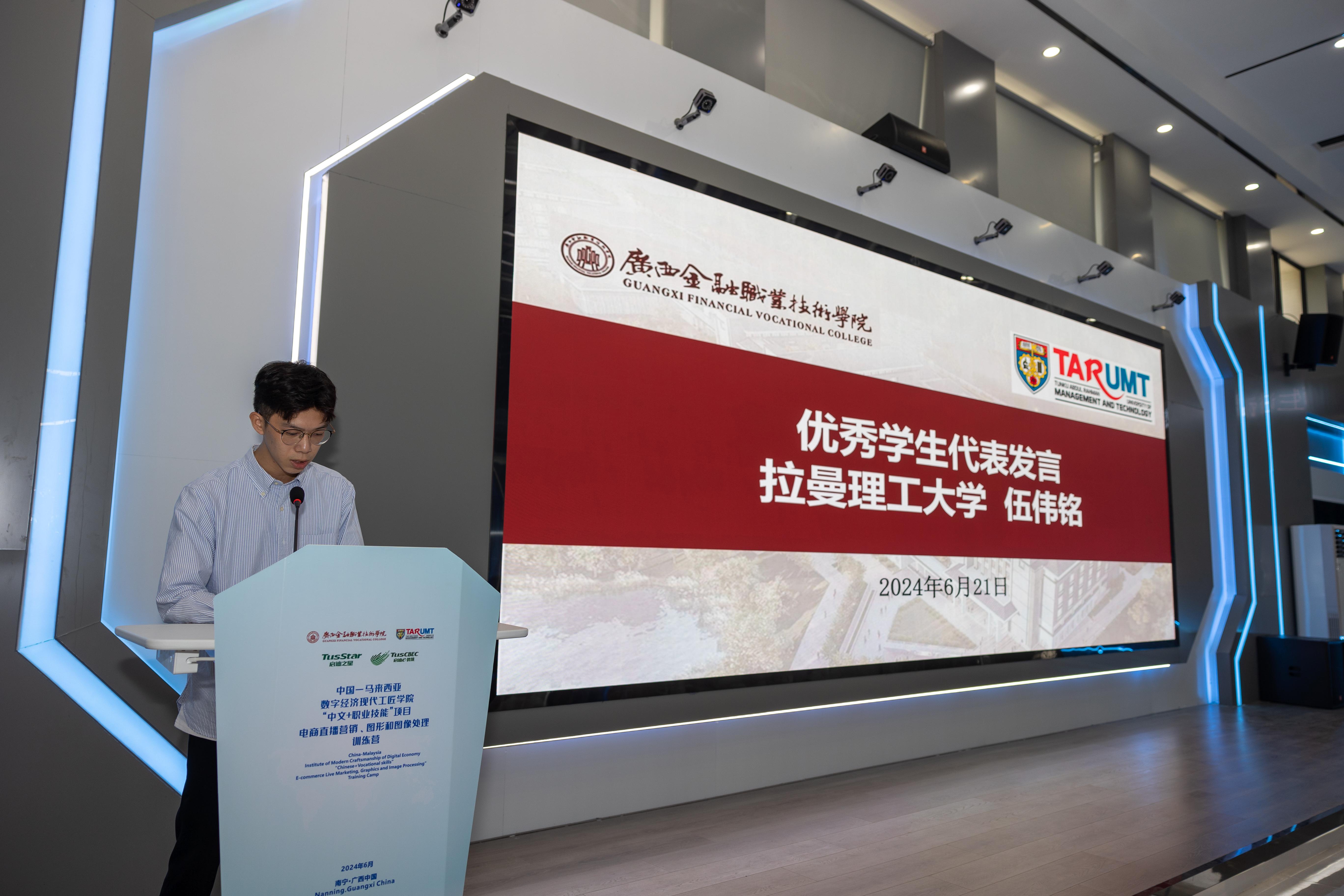 拉曼理工大学优秀学生代表伍伟铭发言