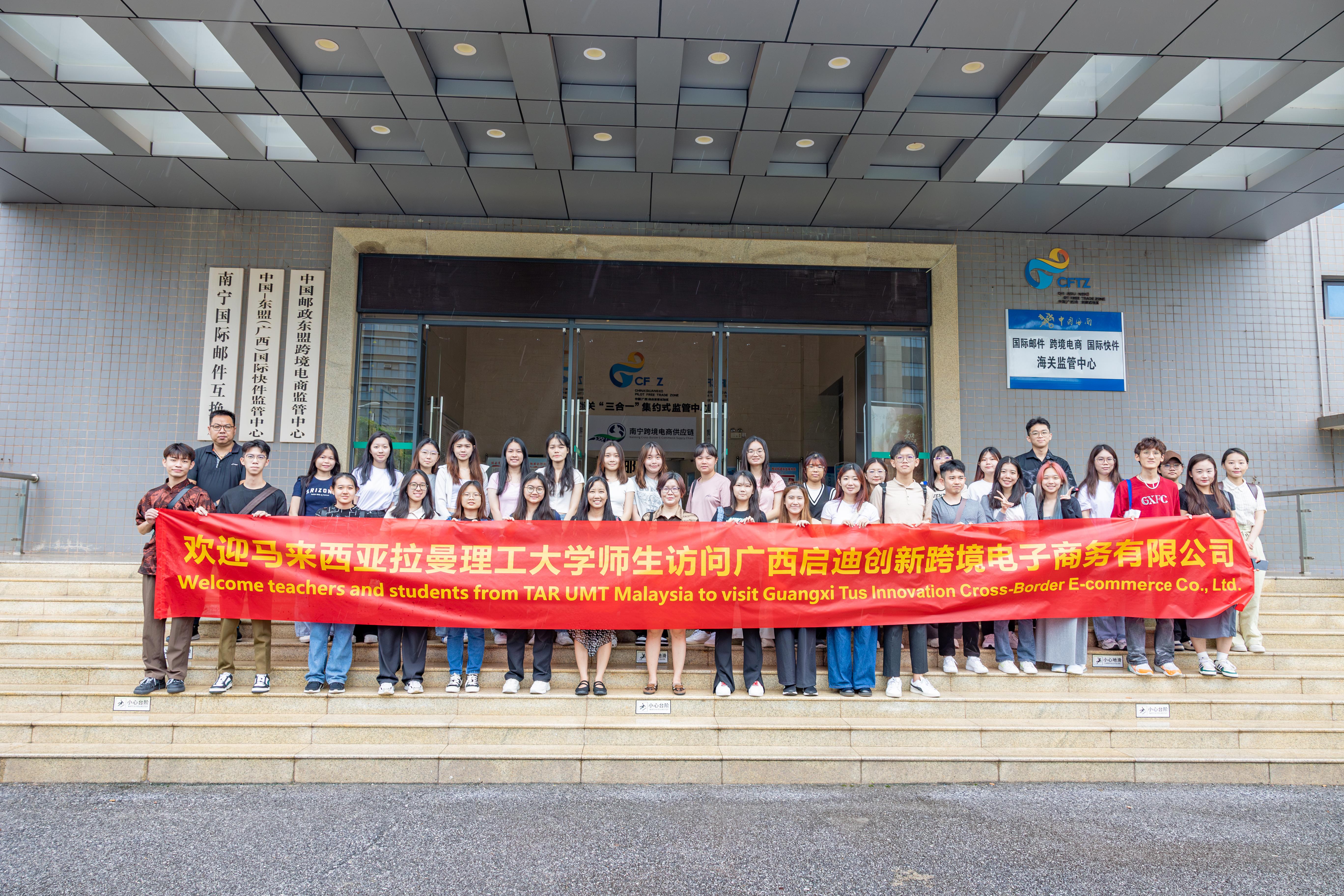 18日上午,拉曼理工大学师生同kaiyun官网教师参访启迪创新跨境电子商务有限公司,整体参访南宁综合保税区,走访南宁邮件海关“三合一”监管中心,参观南宁邮政跨境电商收发货链。