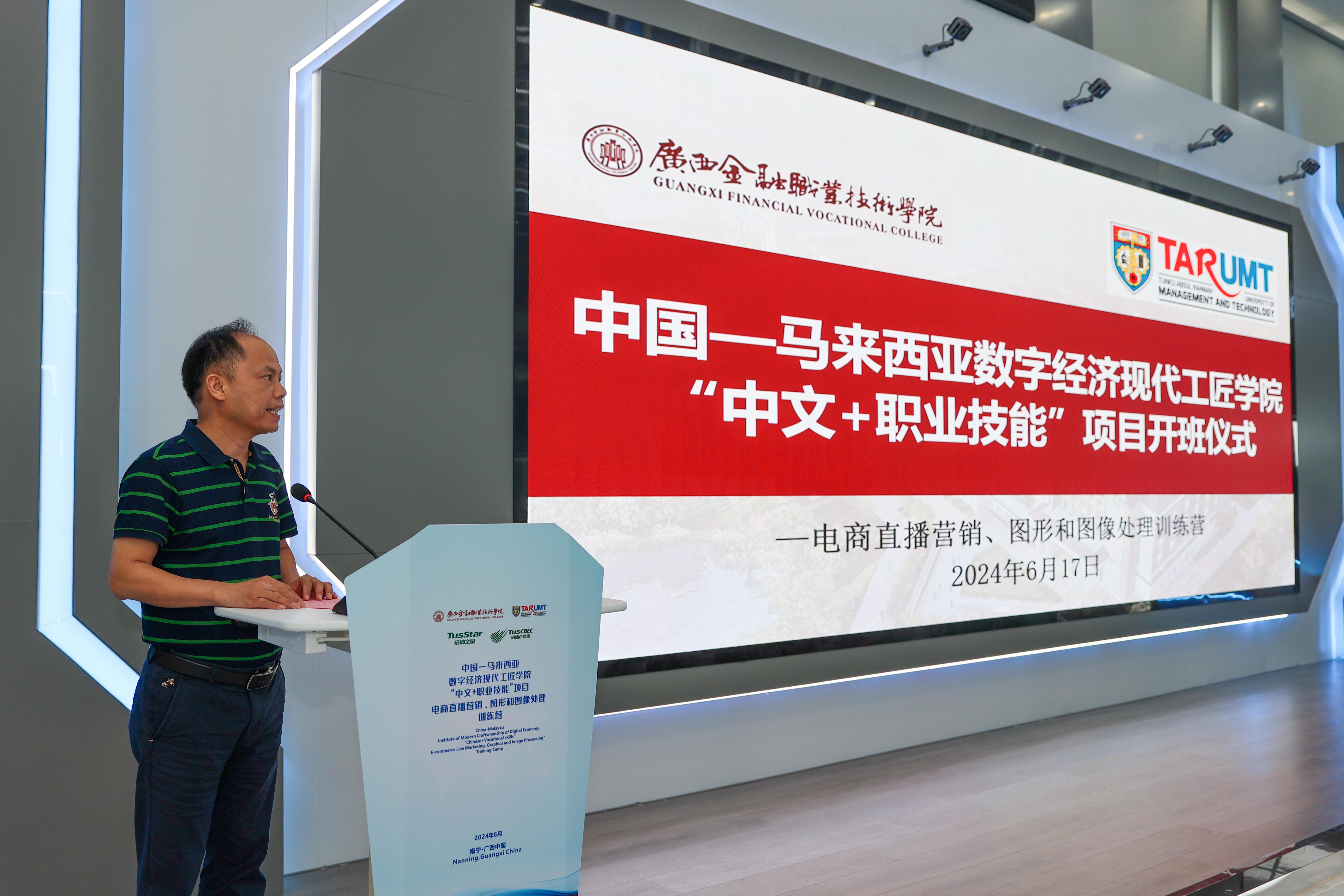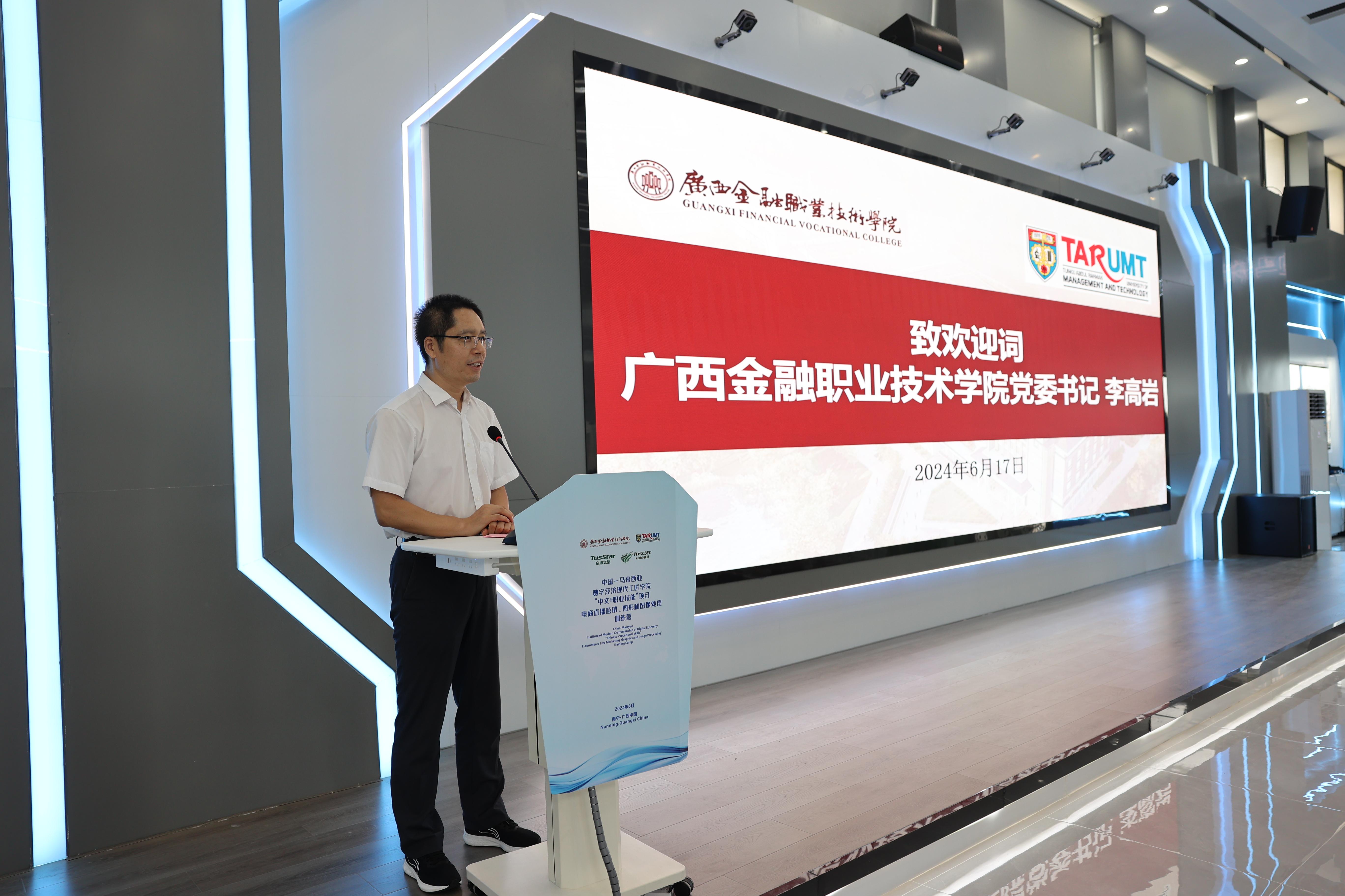 17日上午,中国—马来西亚数字经济现代工匠学院“中文+职业技能”项目开班仪式在kaiyun官网虚拟仿真实训基地举行,kaiyun官网党委书记李高岩出席并致欢迎词,拉曼理工大学会计、金融与商业学院院长王祖国及32位师生出席开班仪式,开班仪式由kaiyun官网副校长谢沛善主持。