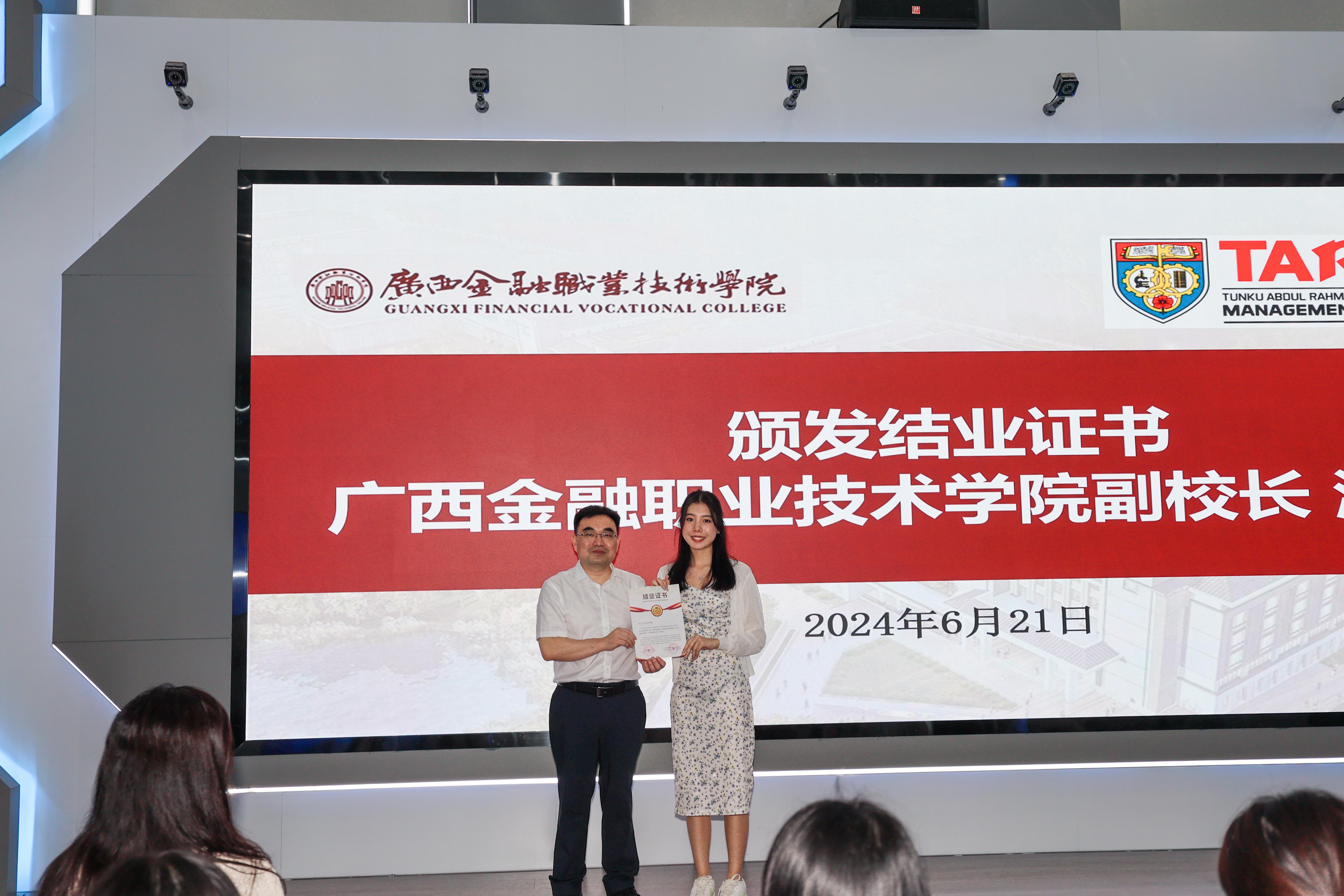 21日,本次交流学习的结业仪式在道德大讲堂举办。kaiyun官网副校长潘大胜为拉曼理工大学学生颁发学业证书和优秀学员证书。