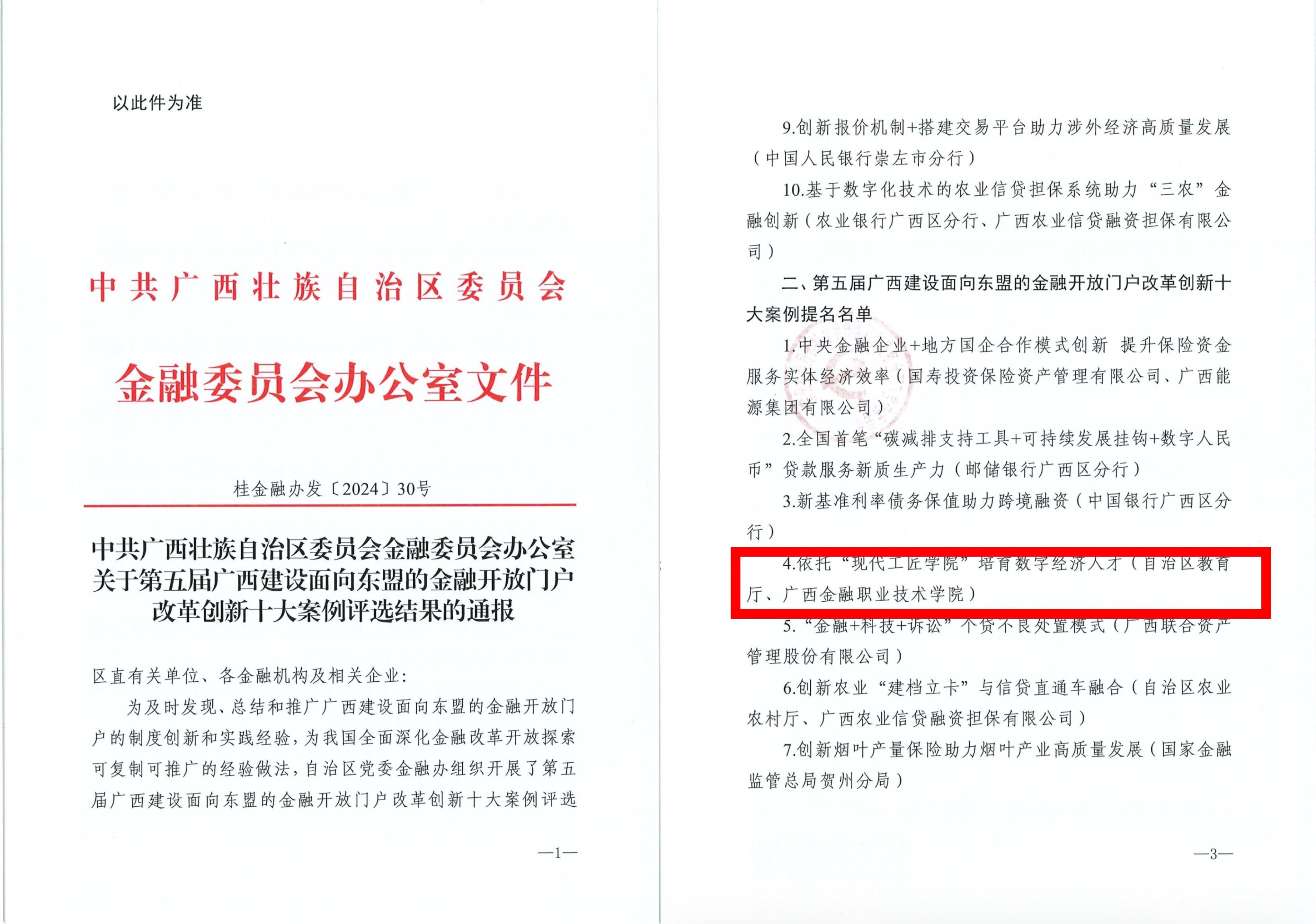 近日,自治区金融办公布第五届广西建设面向东盟的金融开放门户改革创新十大案例评选结果,由自治区教育厅联合kaiyun官网申报的案例《依托“现代工匠学院”培育数字经济人才》获第五届广西建设面向东盟的金融开放门户改革创新十大案例提名。