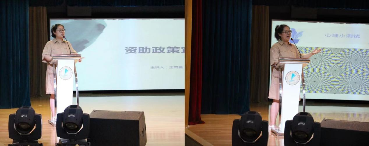 见面会后,王雨晨老师进行资助政策介绍与心理健康教育。她详细介绍了国家、学校层面的资助政策,从四种常见心理问题入手讲解心理健康教育相关知识。