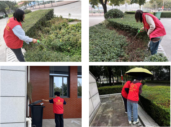 建设文明校园、营造优美校园环境是全院师生共同责任。每个午休时刻,“红马甲”的身影便出现在网格化管理责任区域。她们分工明确、协作有序、不畏风雨,对道路、花坛、下水口的纸屑、烟头等垃圾进行清理。在创建过程中,党员教师们率先带头,以身作则,充分诠释党员先锋的意义,为学生们树立良好榜样。广大学生积极参与,风雨无阻,共同维护校园环境,自觉做文明风尚的践行者和传播者。