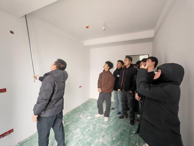 实训伊始,师生团队奔赴渭南工地。经验丰富的工人们热情接待了前来参观学习的师生,并就多项关键施工工艺展开了详细介绍,学生们全神贯注地聆听讲解,不时记录关键信息,并积极提出问题与工人互动交流。