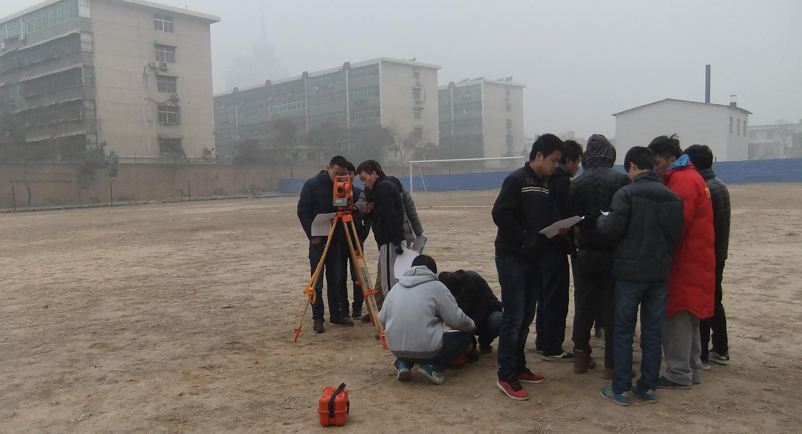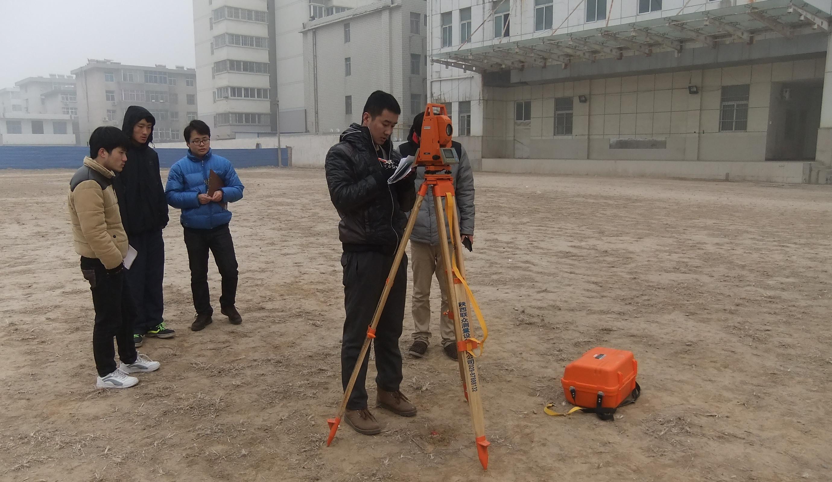 比赛时天气比较寒冷,学生们不畏严寒,精神抖擞,专心测量,体现了测量学生吃苦耐劳的优良品质。
