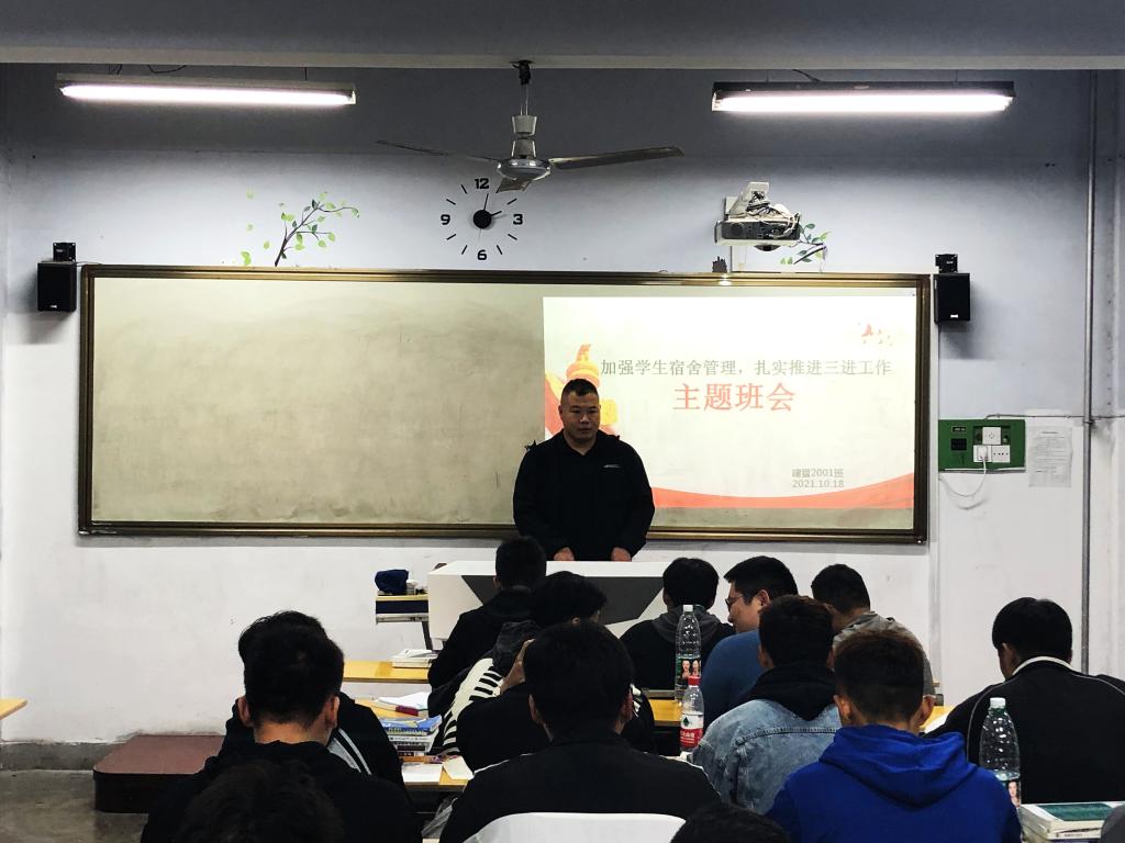 根据安排,10月18日晚自习,bat365中文官方网站各班主任召开主题班会,组织学生集体学习工作文件和相关制度,对“加强学生宿舍管理,扎实推进‘三进’工作”进行宣传动员,积极营造浓厚活动氛围。
