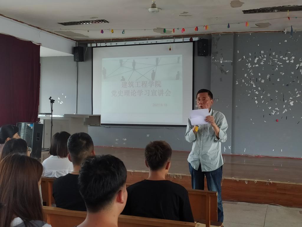 为庆祝中国共产党成立100周年,学习贯彻习近平总书记在党史学习教育动员大会上的重要讲话精神,充分发挥党员干部红色基因带头作用,激励bat365师生传承红色精神,bat365中文官方网站党总支精心筹划,于6月18日14:30在bat365中文官方网站七楼大学生活动中心举办了党史学习教育宣讲会,会议由bat365中文官方网站党总支书记韩世亮主持,全院师生参加学习。