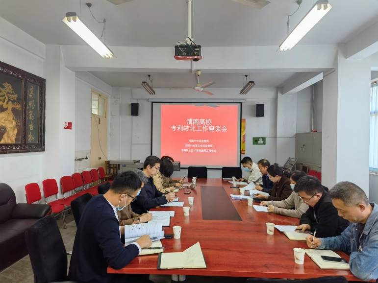 2022年4月2日下午,渭南市市场监管局知识产权服务中心副主任贺延、渭南市临渭区市场监督管理局副局长张丽燕等一行6人到bat365bat365中文官方网站会议室就高校专利转化工作进行座谈、调研。学校建工学院相关负责人及姚立民、张银环、薛静云3位博士进行了座谈交流。