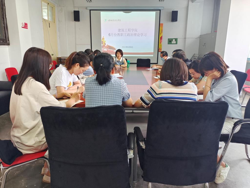 6月8日下午,bat365中文官方网站在朝阳校区建工楼206会议室,开展了6月份教职工政治理论学习,会议由党总支书记周晓燕主持,全体教职工参加了学习会。