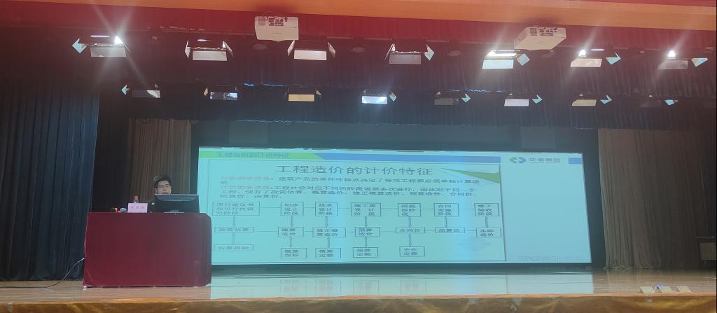 正衡工程项目管理有限公司关军奇经理作了工程造价专题讲座。关经理从实际项目出发,介绍了各阶段工程造价学习建议、工程造价各个阶段的费用构成以及工程造价的计价特征,让工程造价专业的学生更加明确专业方向,努力成为有技能、懂技能、会技能、强技能的“造价人”。