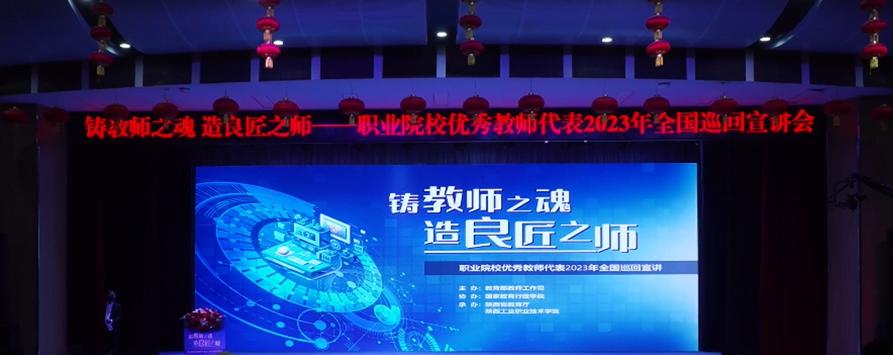 本次会议主题《铸教师之魂,造良匠之师》,陕西工业职业技术学院党委书记惠朝阳致欢迎辞并希望以此次会议为契机,做好模范带头作用,相互协作,推动职业院校全面发展。陕西省教育厅副厅长王海坡提出希望广大教师认真学习,广泛宣传;深刻领会,把握内涵。陕西工业职业技术学院刘永亮教师代表通过国家“双高”建设项目的事迹,告诉我们如何突破职业院校就业问题,提高教师能力及在没有任何经验可借鉴的前提下,如何高质量完成双高项目。6位教师代表立足岗位、亲身躬行、迎难而上、改革创新,通过自己的感人事迹,从不同角度诠释着英雄的成长之路。