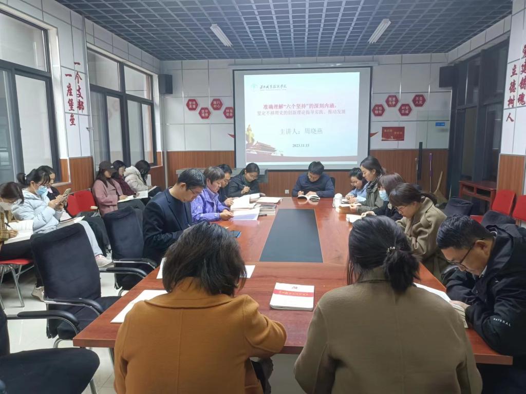 11月15日下午,bat365中文官方网站党总支书记周晓燕在建工楼108会议室为全体党员同志讲主题教育专题党课。