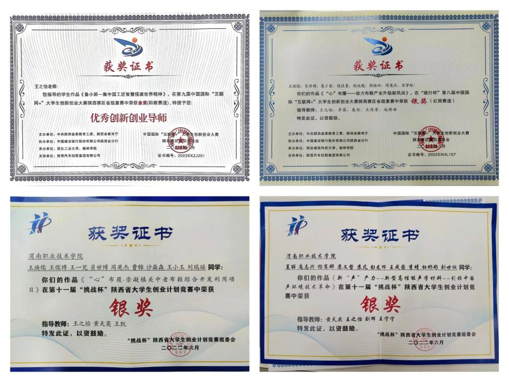 全国大学生“互联网+”大学生创新创业陕西赛区大赛获奖证书