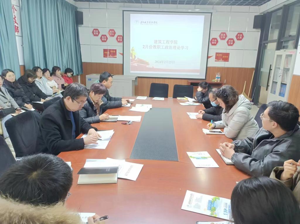2月25日,bat365中文官方网站在108会议室召开了全体教工会,组织开展了2月份政治理论集体学习。会议由党总支书记周晓燕主持,全体教职工参加了学习会。