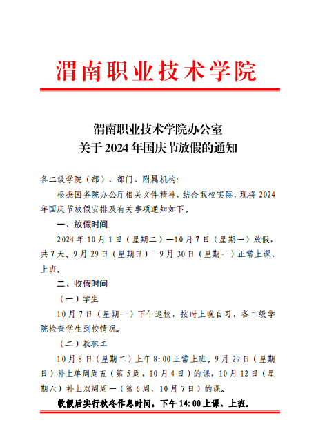 bat365中文官方网站办公室关于2024年国庆节放假的通知