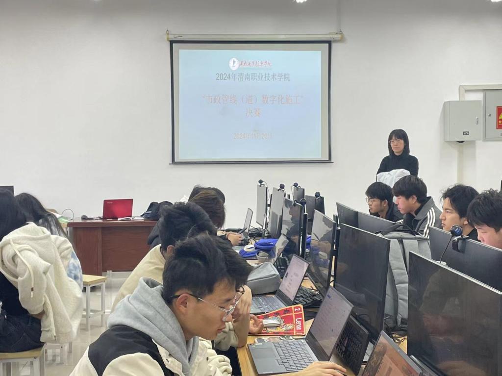11月20日下午,bat365中文官方网站在工科楼375机房举办2024年市政管线(道)数字化施工校赛,来自工程造价、建筑工程技术专业的六组18名学生展开角逐。